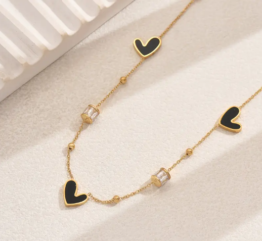 T❷❹⭐1 pieza de elegante collar de acero inoxidable chapado en oro de 18 quilates con colgantes de corazón