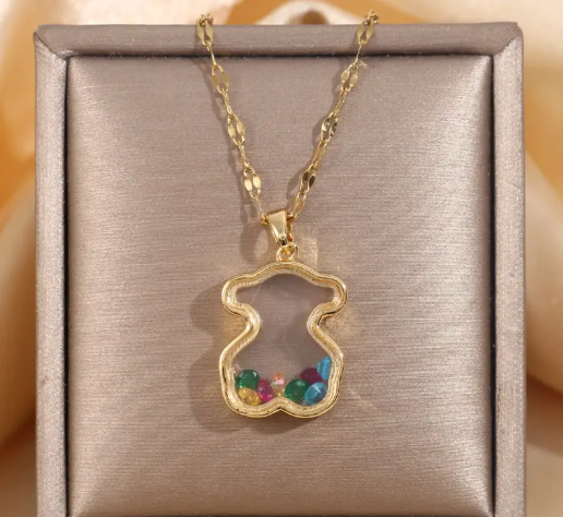 T❷❻🦋1pc Lindo Oso de Colores Colgante de Collar, Encantador Accesorio de Joyería de Animal de Dibujos Animados