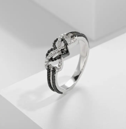 T❹❻🌹Anillo de corazón de acero inoxidable negro elegante y hermoso, de dos colores