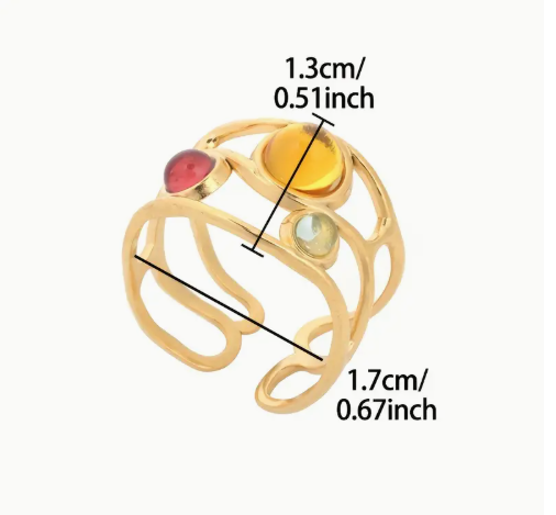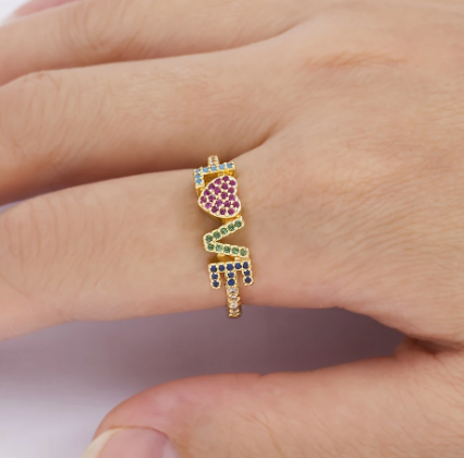 T❹❺🦋Anillo Ajustable de Carta de Amor Chapado en Oro con Circonita 3A Colorida