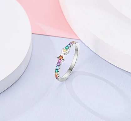 T❹❺🦋1pc Anillo de Plata Esterlina 925 nuevo anillo infinito arcoíris con circonita
