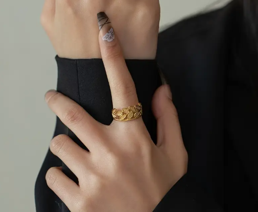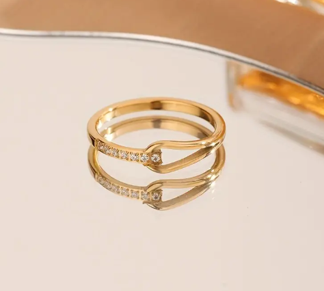 T❹❹🍂Kpop Style Ring Hecho De Acero Inoxidable Chapado En Oro De 14k