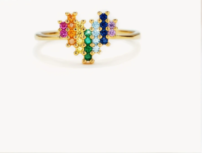 T❹❺🦋Anillo Encantador de Corazón Arcoíris en Plata de Ley 925