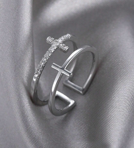 T❹❶💐1 pieza Anillo abierto cruzado de doble capa minimalista y elegante
