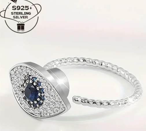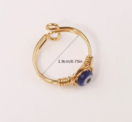 T❹❶💐Anillo Ajustable de Ojo Turco Azul - Estilo Vintage y Étnico, Cobre con Piedras Sintéticas
