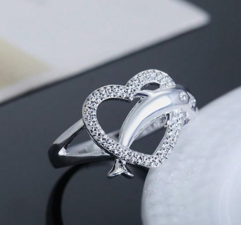 T❹❶💐Anillos de plata de ley 925 de alta calidad con delfines y corazón