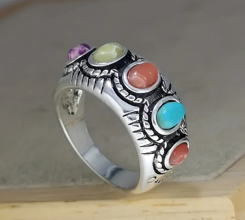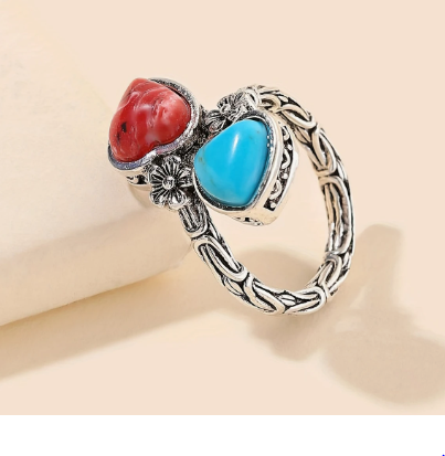 T❹❹🍂Anillo de aleación de zinc con incrustaciones de turquesa de estilo vintage para mujer