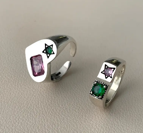 T❷❺🌷Conjunto de anillos de acero inoxidable elegante con estrella y corazón para mujeres
