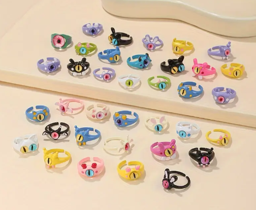 T❸❸💫C/U Anillos abiertos de monstruo lindo, estilo hip hop de aleación unisex, mosaico de resina, tamaño ajustable para fiestas y vacaciones - Accesorio para todas las estaciones