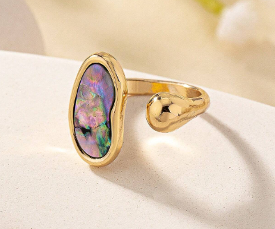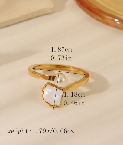 ❷❻🦋1 pieza Anillo abierto elegante y lujoso de oro chapado en oro de 18K con nácar y perla