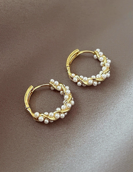 🍄 ❶❺Aretes De Aro Con Decoración De Perlas Falsas