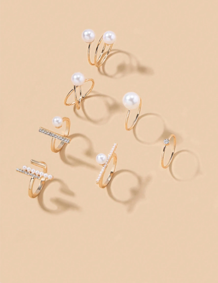 ❷❶🔥❶❶🍎Anillo De Decoración De Imitación De Perlas De 7 Piezas
