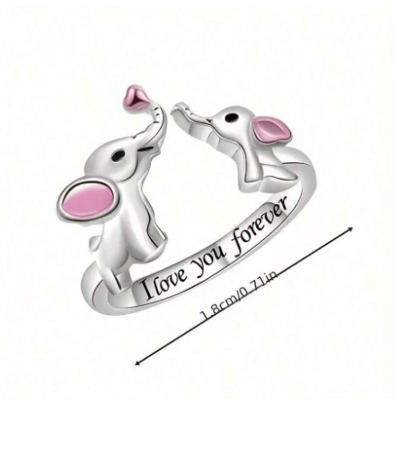 ❶❾☘️1 Pieza Anillo Ajustable En Forma De Elefante Y Corazón.