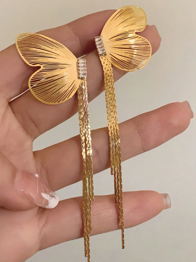 ❸❸💫1 par de pendientes elegantes de mariposa, alas de alambre con borlas largas, pendientes colgantes de mariposa, pendientes de moda para mujer