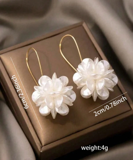 ❸❸💫1 Par De Pendientes Largos De Bolas Florales De Diseño Exagerado Con Pétalos Blancos Y Pendientes