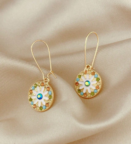 ❸❹🌻 1 par de pendientes aro elegantes y retro de alta gama con diseño de gota de esmalte y rhinestones, ideales para el uso diario, fiestas y celebraciones