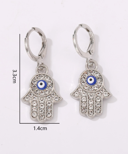 ❸❸💫Pendientes largo mano Hamsa decoración del mal de ojo con diamante de imitación