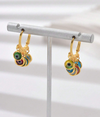 ❸❸💫Aretes Colgantes Con Diseño De Ojo Azul Elegante Y Con Chapado En Oro De 18k, Aretes De Gota Con Diseño Personalizado Y De Moda, Que Se Adapta A Las Mujeres Para Usar A Diario