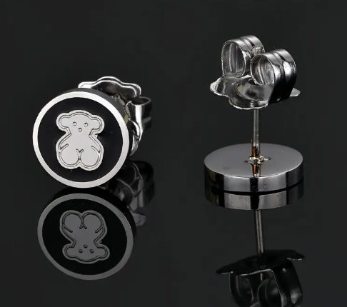 T❸⓿🌼1 Par de Pendientes Redondos de Oso 3D, Joyería de Oreja de Acupuntura de Resina Sintética Linda, Acero Inoxidable