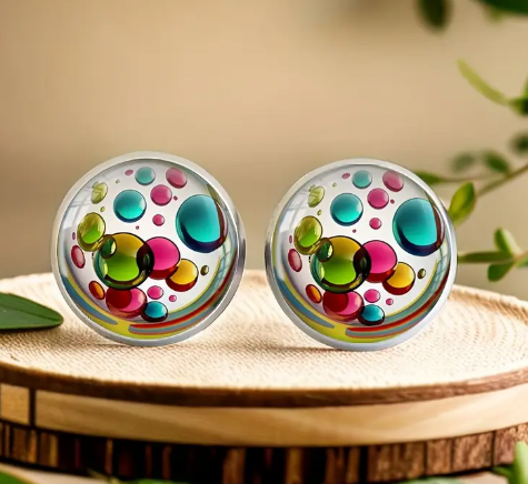 T❷❼😍2pcs Pendientes de Botón de Burbuja Arcoíris Vibrante - Acero Inoxidable Hipoalergénico