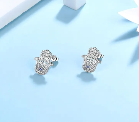 T❸⓿🌼LÁGRIMAS DE AURORA Plata Esterlina 925 Ojo Malvado Mano de Hamsa, Estilo Elegante Vintage, Circonita Sintética 3A, Plateado con Plata