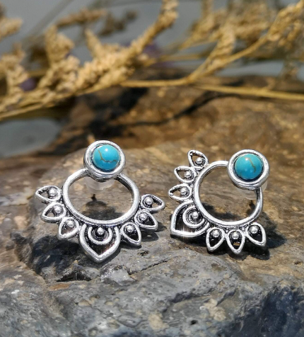 ❷❼😍2 piezas/set Pendientes chaqueta con diseño de turquesa