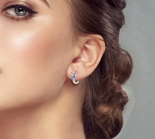 ❷❼😍Aretes de flor con strass y bloques de color, 1 par, regalo para San Valentín, mamá, madre, Día de la Madre