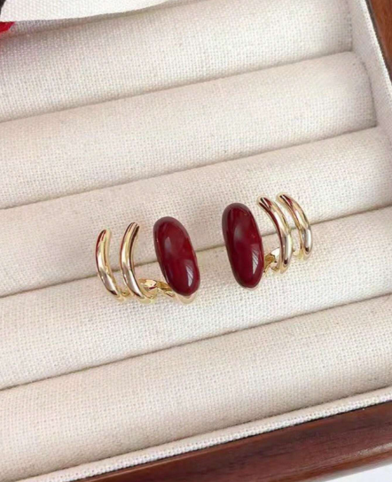 ❷⓿☀️1 par de aretes únicos de color vino tinto, aretes de nicho de alta gama para mujeres, adecuados para el invierno