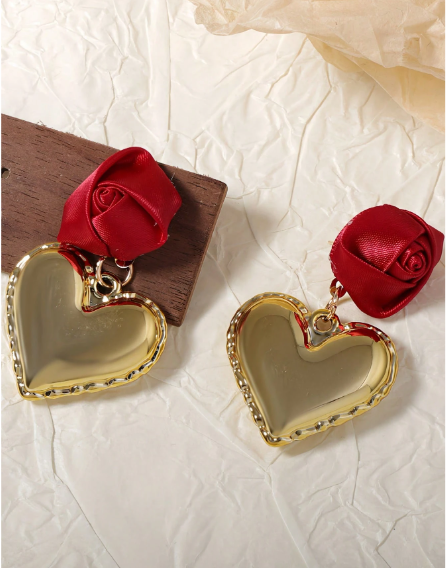 ❷⓿☀️1 par de pendientes de mujer con forma de corazón y flor de rosa 3D