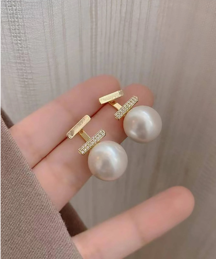 ❶❾☘️Pendientes De Tachuela Con Decoración De perlas