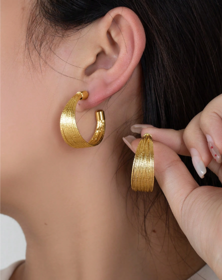 ❷❶🔥1 par de pendientes de metal texturizado en forma de C de lujo ligero para industria pesada