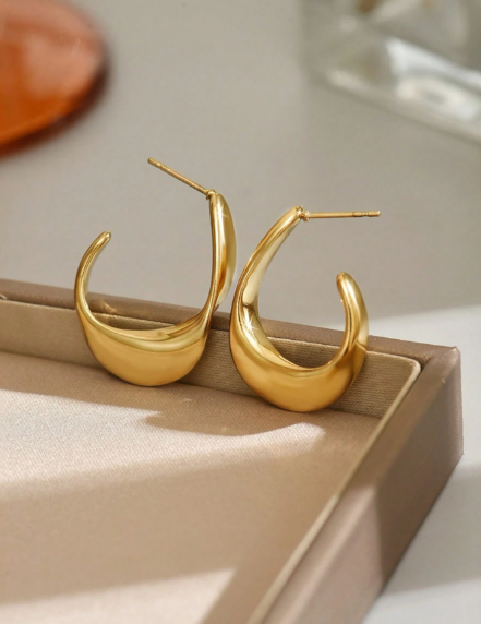 ❷❷🌿1 set de pendientes de acero inoxidable con forma de C retorcida de geometría exagerada y de moda.