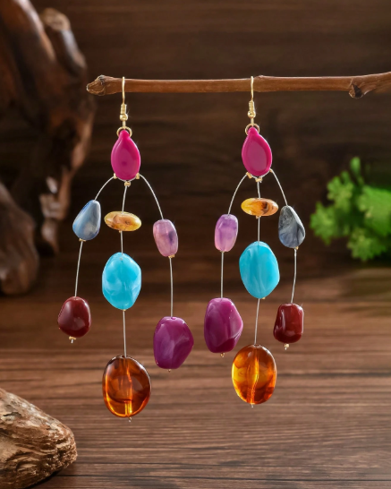 ❷❶🔥2 piezas Aretes colgantes de resina y turquesa con forma geométrica asimétrica elegante