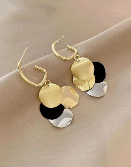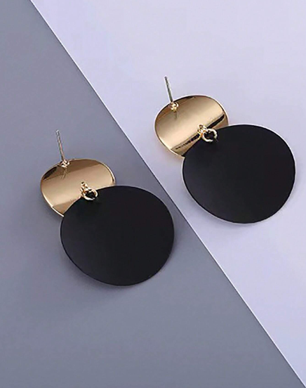 ❶❻💥1 par de pendientes colgantes redondos de dos capas con diseño geométrico en dorado y negro para mujeres