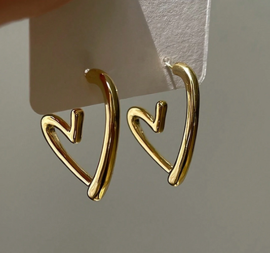 ❶❷💛1 Par de aretes de botón con corazón hueco