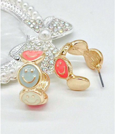 ❹❽🌻1 Par De Pendientes De Aro De Personalidad Con Cara Sonriente Dulce