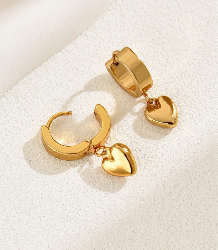 T❹❶💐1 par de aretes con forma de corazón chapados en oro de 18K