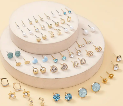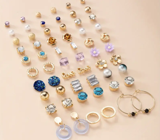 T❹⓿🍁 Un conjunto de 30 pares de pendientes de flores geométricas de piedras brillantes