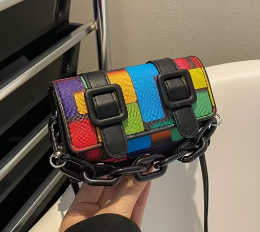 T❺⓿💥Mini bolso cruzado con bloques de color - Elegante bolso cruzado de piel sintética