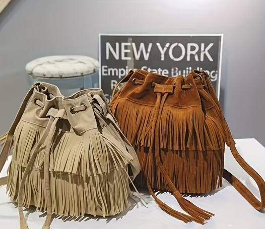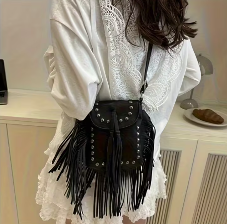 T❺⓿💥Bolso estilo vintage con borlas, bolso cruzado con cordón