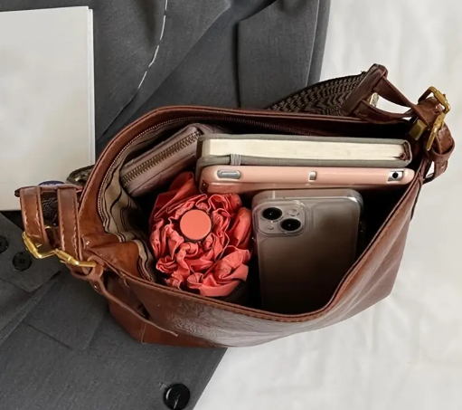 T❹❺🦋Bolso de Hombro Retro Acogedor para Mujer con Ribete de Piel Sintética