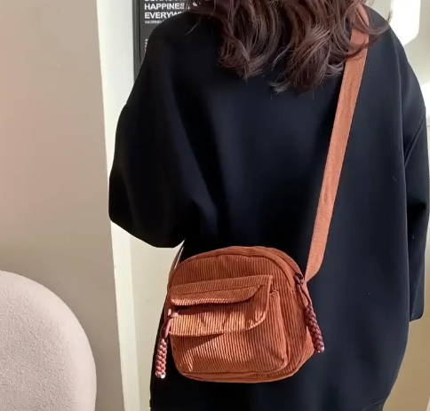 T❹❷🔥Bolso cruzado de mujer casual de cordeuro - Correa ajustable, cierre de cremallera