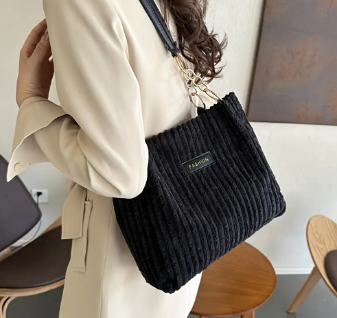 T❸❻🌹1pc Bolso Tote de Pana Elegante y Casual con Cierre de Cremallera, Gran Capacidad Plegable Forrado en Poliéster, Correas Fijas para el Hombro para Uso Diario