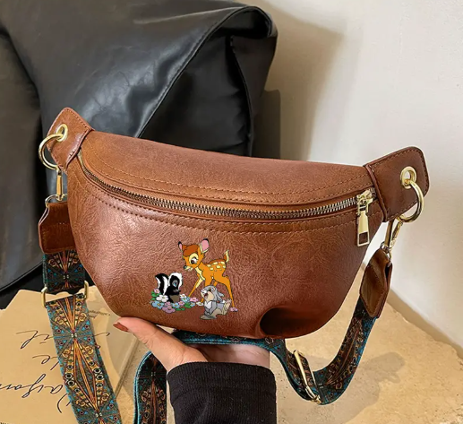 T❸❾🍀1 pieza de bolso cruzado 2D de impresión plana Bambi, bolso de cintura de moda con cierre de cremallera, estuche deportivo multifuncional para viajes y uso diario