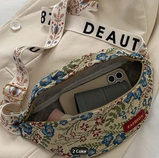 T❷❽💐1pieza Moda Fresca Lona Primavera Verano Nicho Vintage Ancho Bolso de Hombro de Cien Dumplings - Color Mezclado
