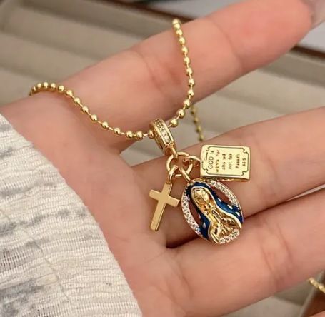 T❹❺🦋Conjunto de collar y pulsera de cruz de fe elegante