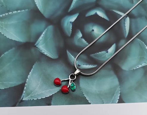 T❹❺🦋1pc Collar con Colgante de Cereza en Acero Inoxidable Chapado en Oro 18K