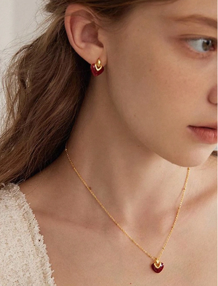 ❷⓿☀️Set de joyería de metal con forma de corazón esmaltado que incluye 3 piezas