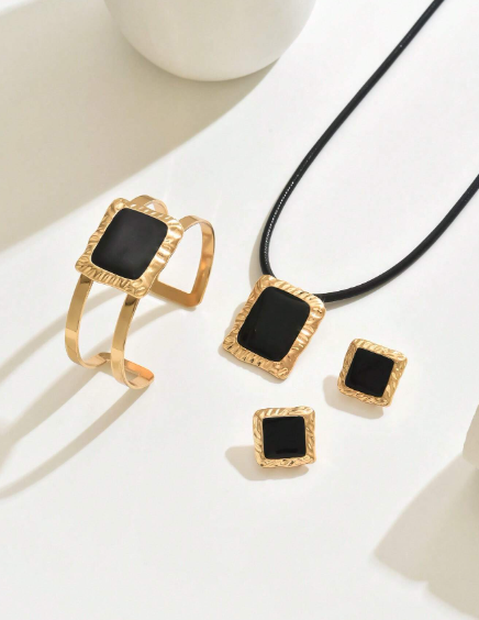 ❷❶🔥Set de 4 piezas con sencillo estilo minimalista geométrico de goteo de aceite en color negro