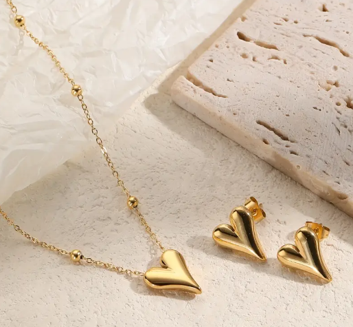 T❷❾🏵️Un conjunto de tres piezas de joyería de moda para mujer que incluye decoraciones de colgante de corazón personalizado, aretes de acero inoxidable y un collar.